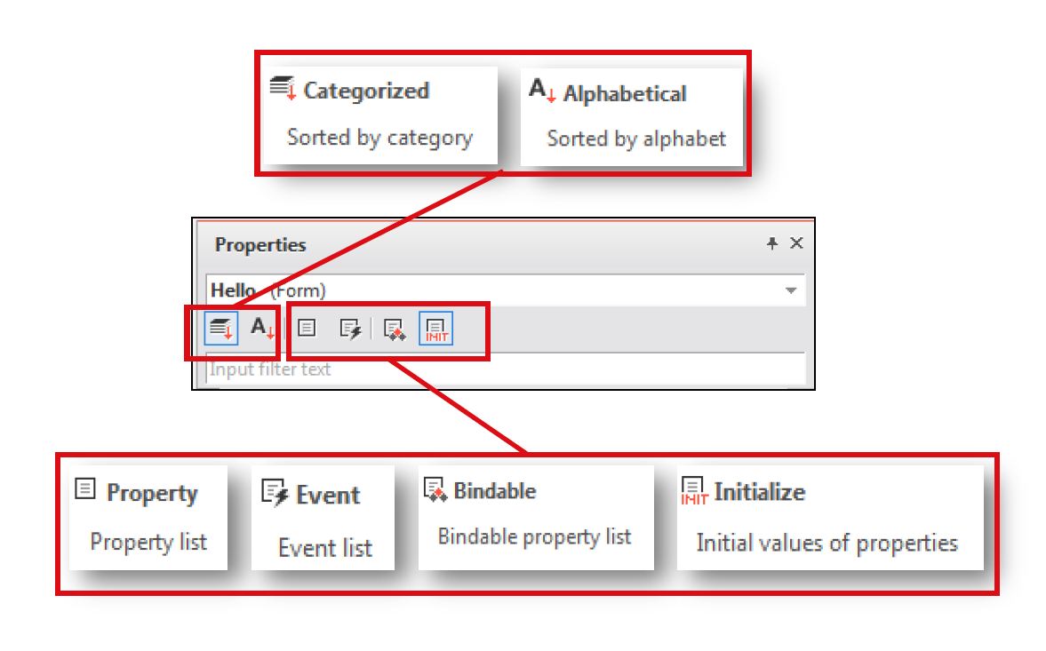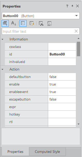 Properties에서 컴포넌트의 속성을 설정 할 수 있다.