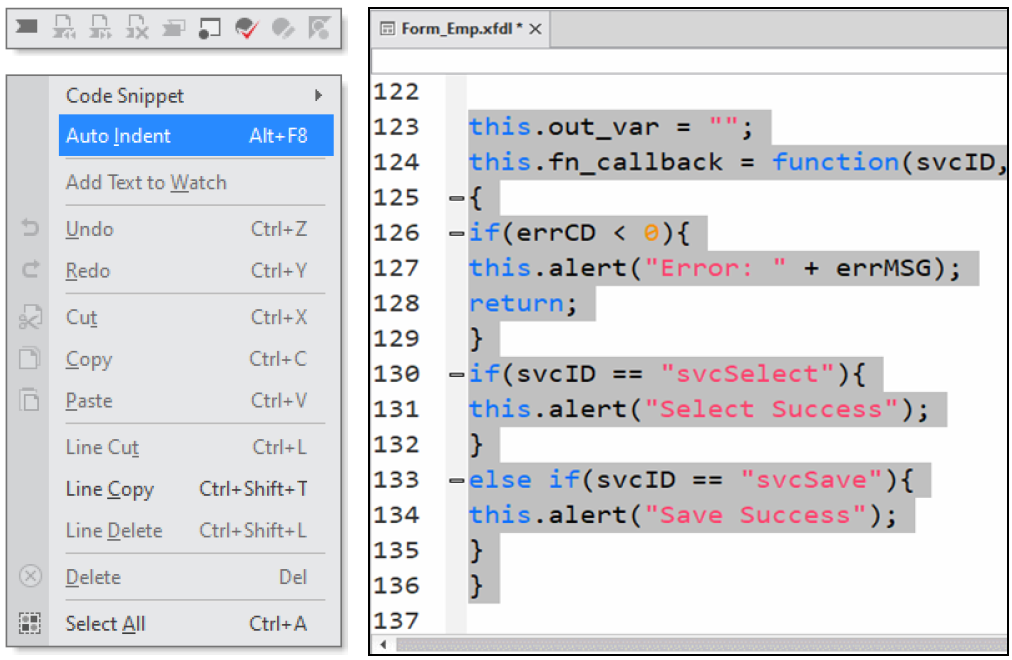 Ctrl + A 로 전체 선택 후 자동 정렬을 할 수 있다.