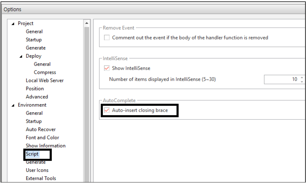 스크립트에서 코드 작성시 {} 을 자동으로 닫아준다.