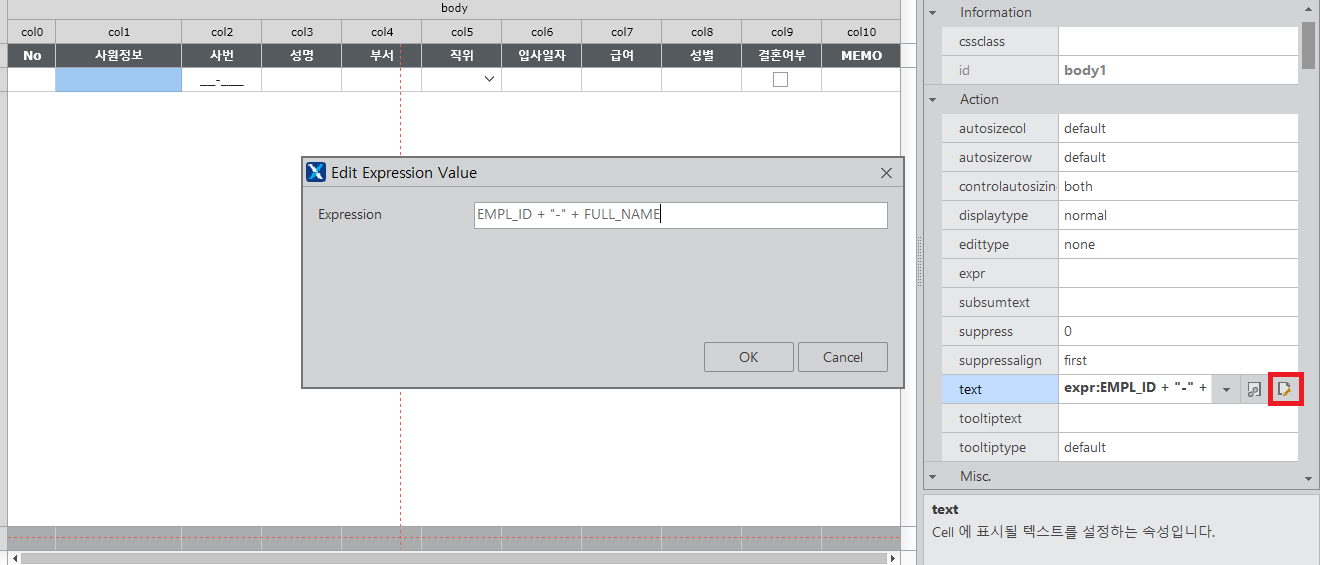 Dataset의 데이터 바인딩 만으로 표현 하지 못하는 데이터는 expression 으로 데이터를 가공하여 만들 수 있다.