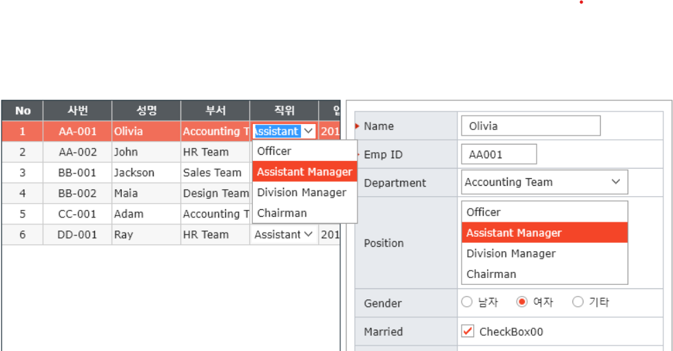 목록 데이터와 연동할 다른 데이터를 바인딩 ( Bind With ) 하면 된다.