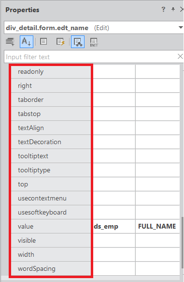 단일 컴포넌트에 데이터를 바인딩 할 때는 dataset을 드래그앤 드롭 한 후 컬럼명을 지정하면 그 데이터가 바인딩 된다.
