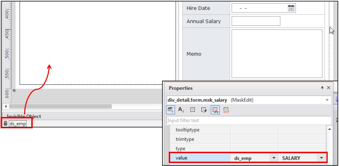 *바인딩 할 때 MaskEdit 컴포넌트는 type과 format 확인.